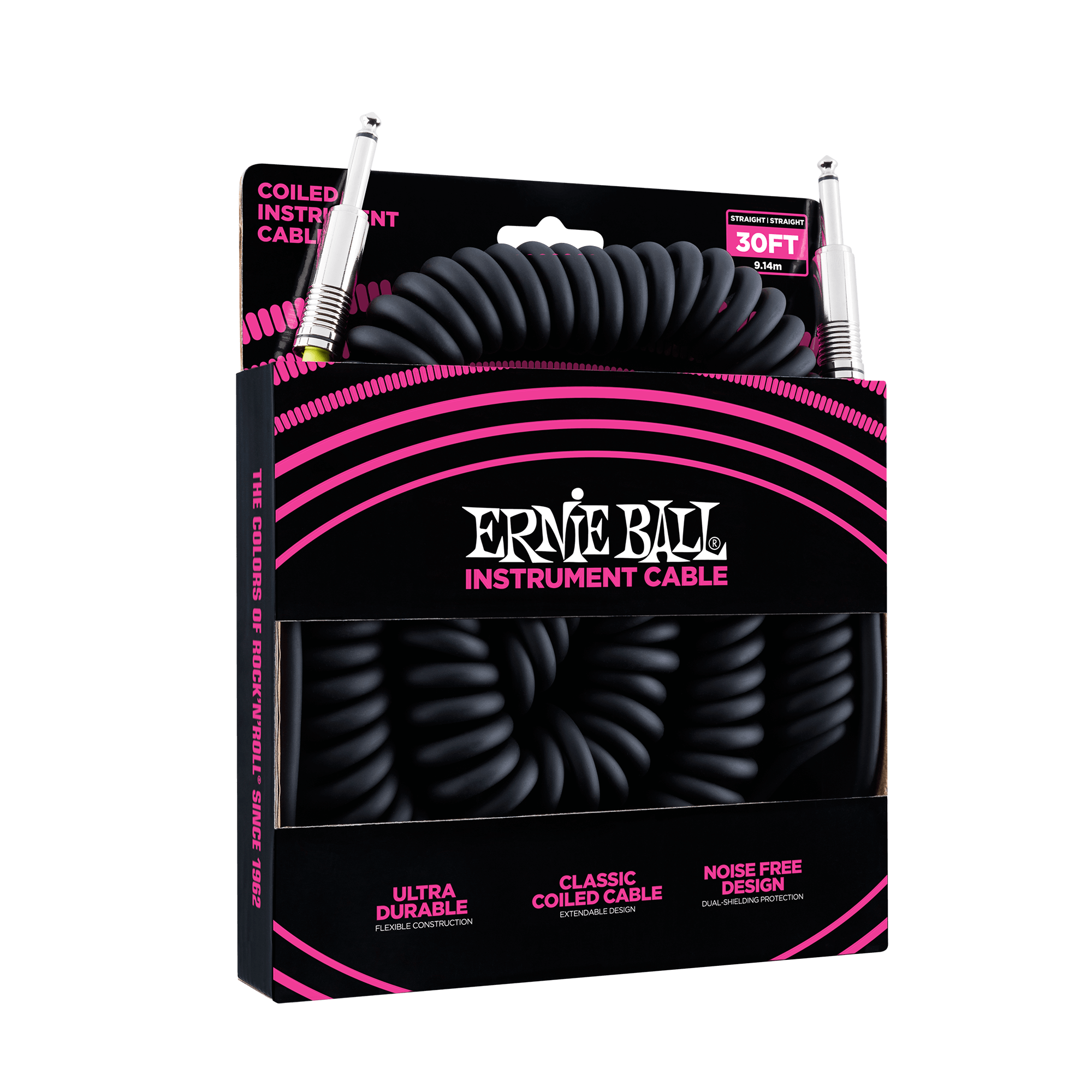Ernie Ball Coiled Instrument Cable Straight/Straight 30ft - Black