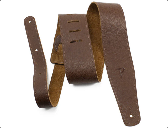2.5 inch Brown Saddle Leather.  Adjustable length 41 to 56
